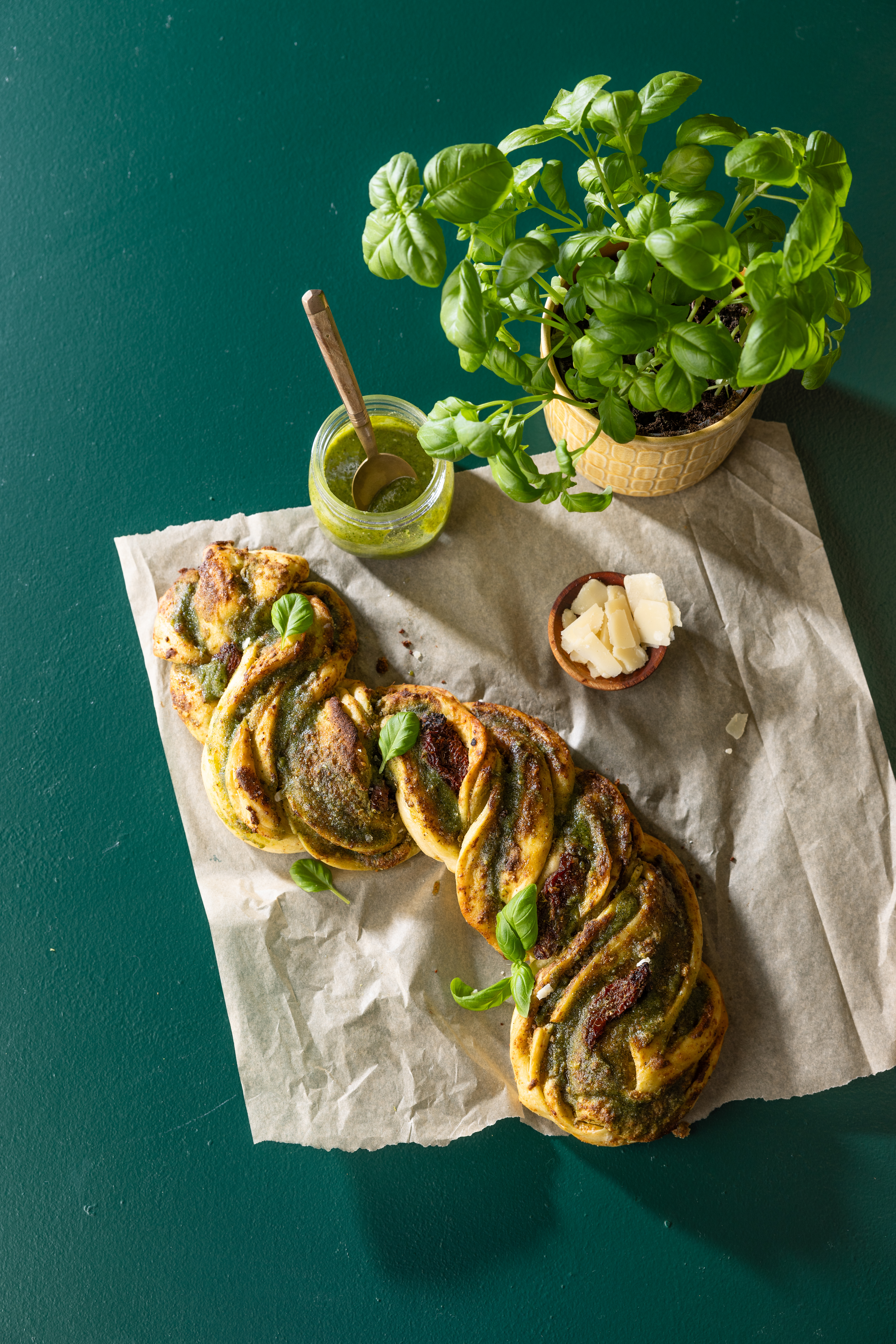 Bist du auf der Suche nach etwas, das schmeckt und auch ein sicheres Thema am Esstisch ist? Probiere das spektakuläre Pesto-Brot, das sowohl eine Augenweide als auch ein Geschmackserlebnis ist! Dieses köstliche Spiralbrot eignet sich perfekt als Snack, Ergänzung zu Suppen oder zum Servieren auf einem Tapas-Tisch. Und das Beste: Du kannst dieses Brot auch ganz einfach milchfrei und vegan zubereiten, indem du Parmesan gegen eine vegane Variante eintauschst. Das Rezept verwendet Trockenhefe, was die Zubereitung besonders einfach macht. Wenn du möchtest, kannst du fertiges Pesto verwenden, dass das Spiralbrot noch einfacher macht. Du kannst verschiedene Geschmacksvariationen von Brot erhalten, indem du verschiedene Kräuter gegen Pesto austauschst. Unser Pesto-Rezept ist wirklich einfach und lecker. Jetzt ausprobieren!