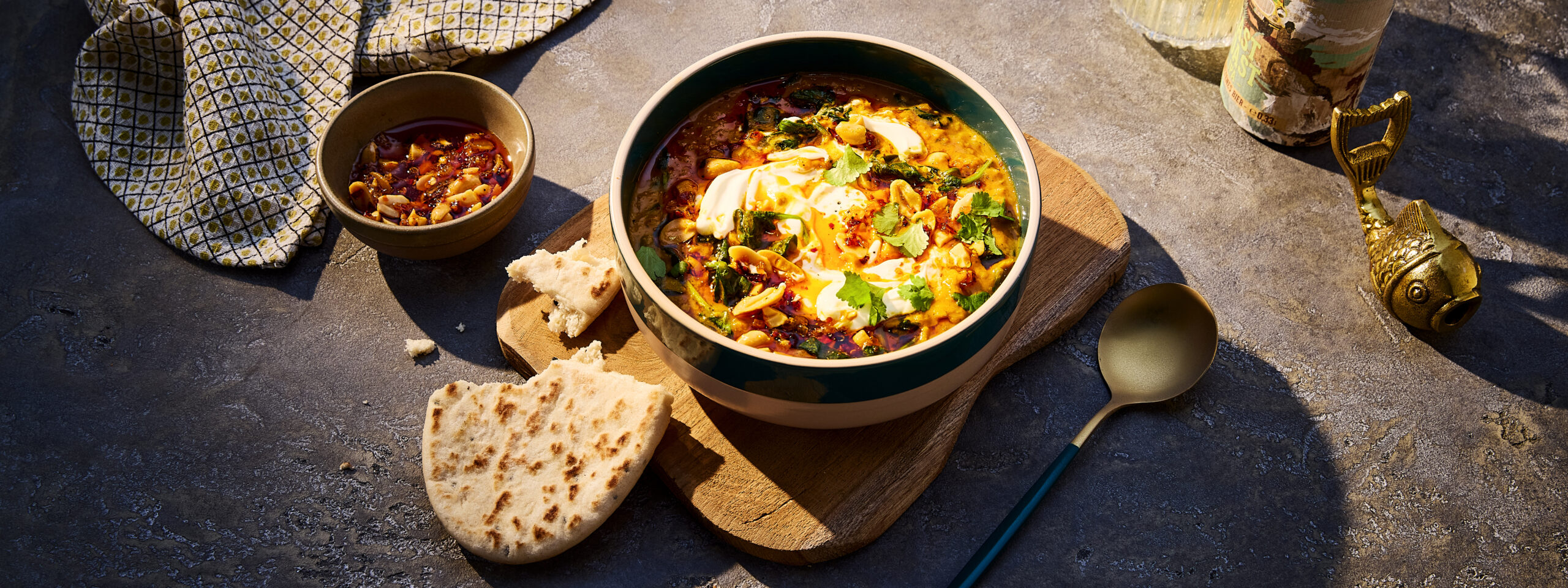 Das würzige Daal mit roten Linsen, zartem Spinat und buttrigem Chili Crisp ist eine aromatische Geschmacksexplosion!